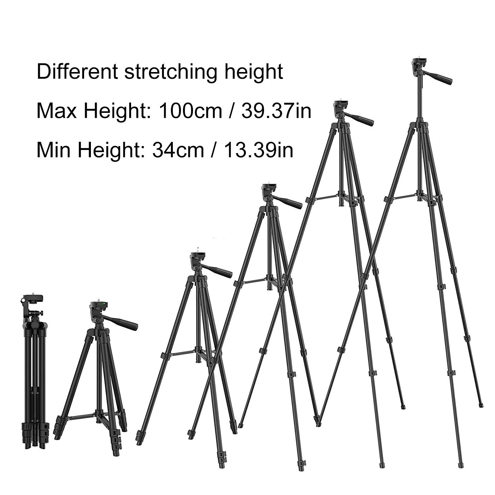 Camera Tripod Aluminum Travel Tripod for GoPro and Other Cameras Phones BT Remote Included 360° Panoramic and 90° Tilt Rotation Phone Tripod Stand