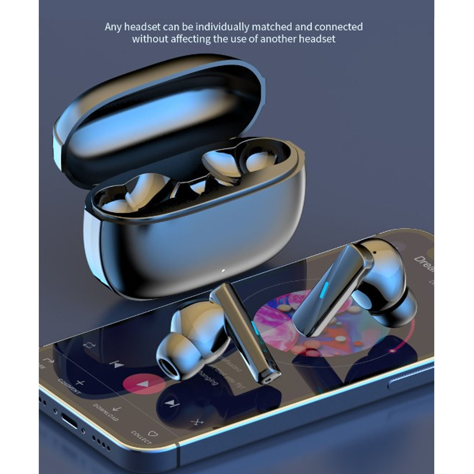 Language Translator Earbuds Wireless 144 Languages Online Translation Earphone for Music Calls Black