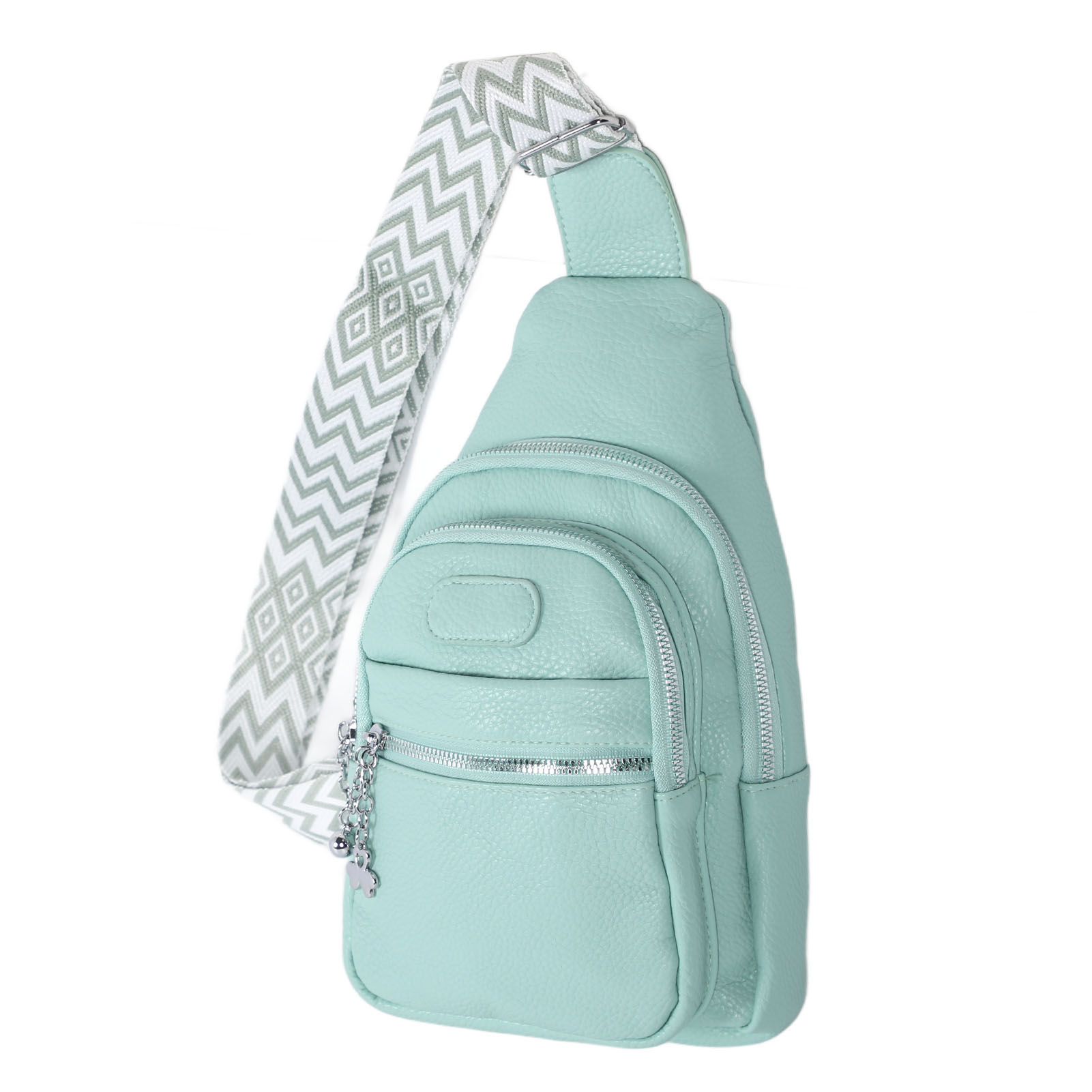 Modische und vielseitige Damen PU Leder Schlingentasche, Bohemian Stil Brusttasche, diagonale Kreuz Tasche, hellgrün