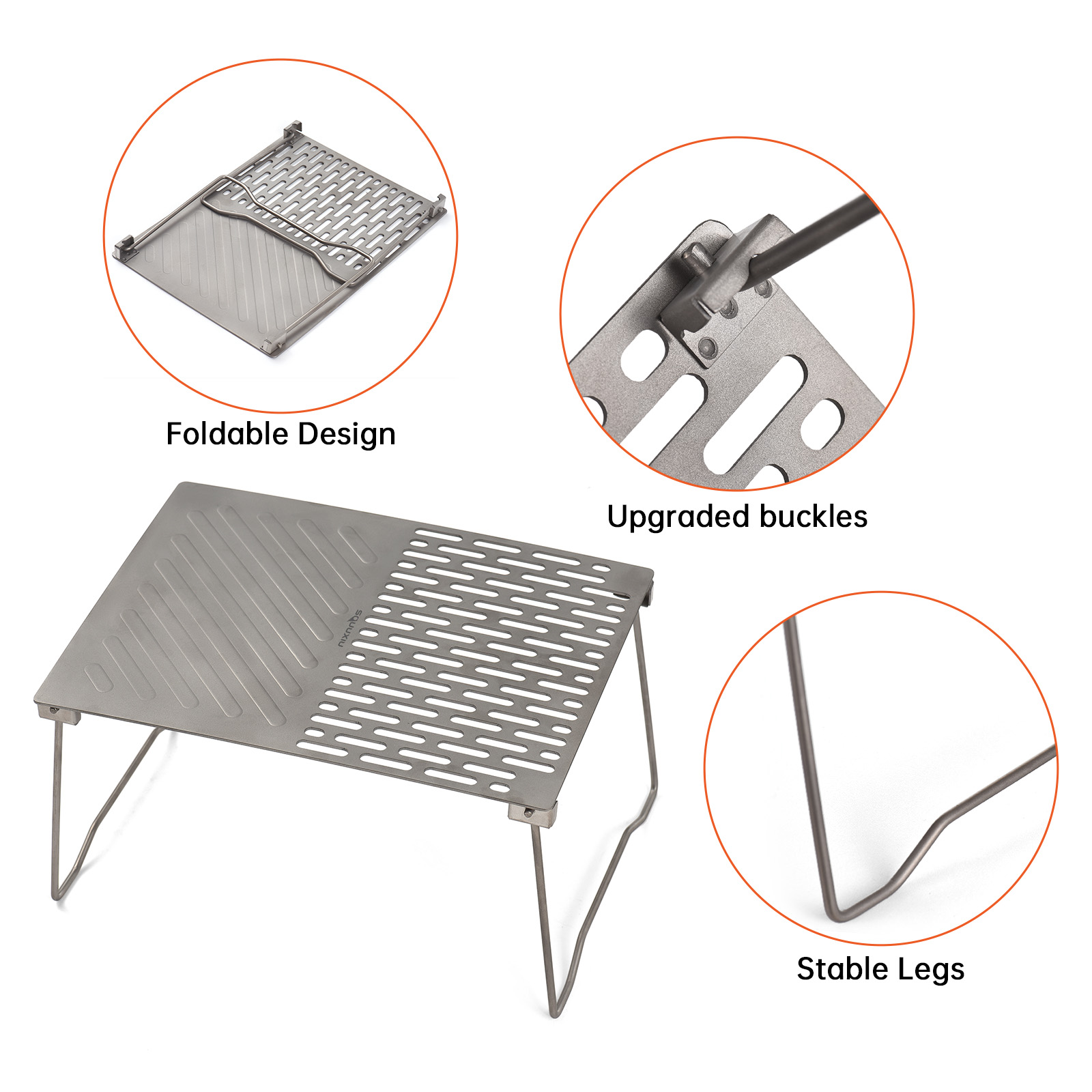 Titangrilltisch (Grillbrett) aus reinem Titan, mit Tischbeinen aus Titan oder Edelstahl, matt oder sandgestrahlt