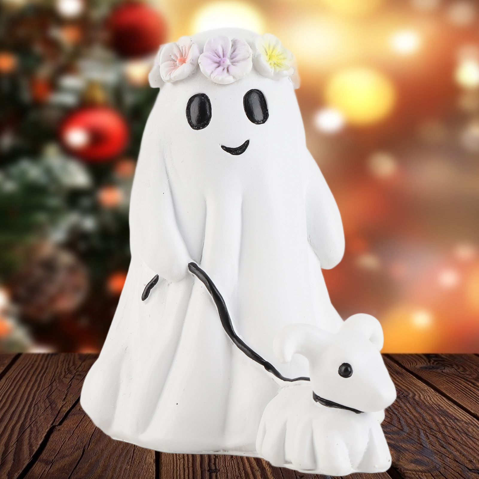 Ghost Walking Dog Statue Spooky Cute Resin Home Decoration Tabletop Ornament Ghost Dog Decor for Indoor Outdoor Use 15cm
