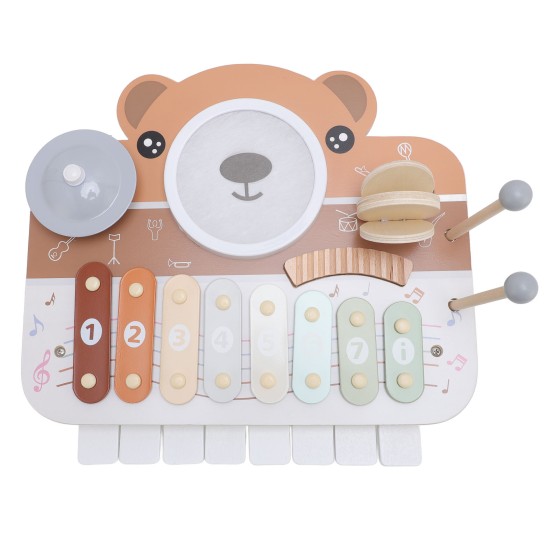 Wooden Kids Music Activity Center, 6-in-1 Drum Set with Xylophone & Percussion Toys for Toddlers, Early Learning Educational Toy to Develop Rhythm & Coordination (Batteries Not Included)