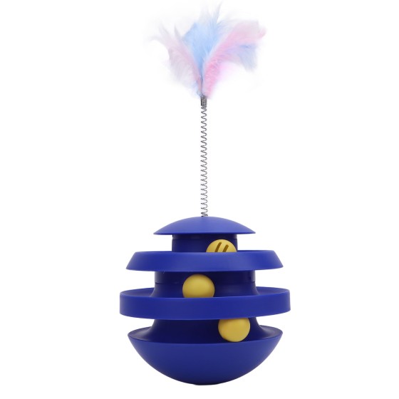 Klein Blue Cat Wobble Toy, Rotating Ball Turntable with Teaser Wand for Indoor Cats, Durable Chew-Resistant Interactive Self-Play Toy to Encourage Exercise & Curiosity