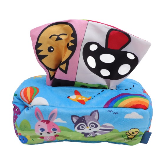 Baby Tissue Box Toy, Soft Plush Montessori Sensory Pull & Sort Learning Toy for Infants, Develops Fine Motor Skills, Prevents Real Tissue Waste, Multifunctional Storage Organizer for Baby Toys, Machine Washable