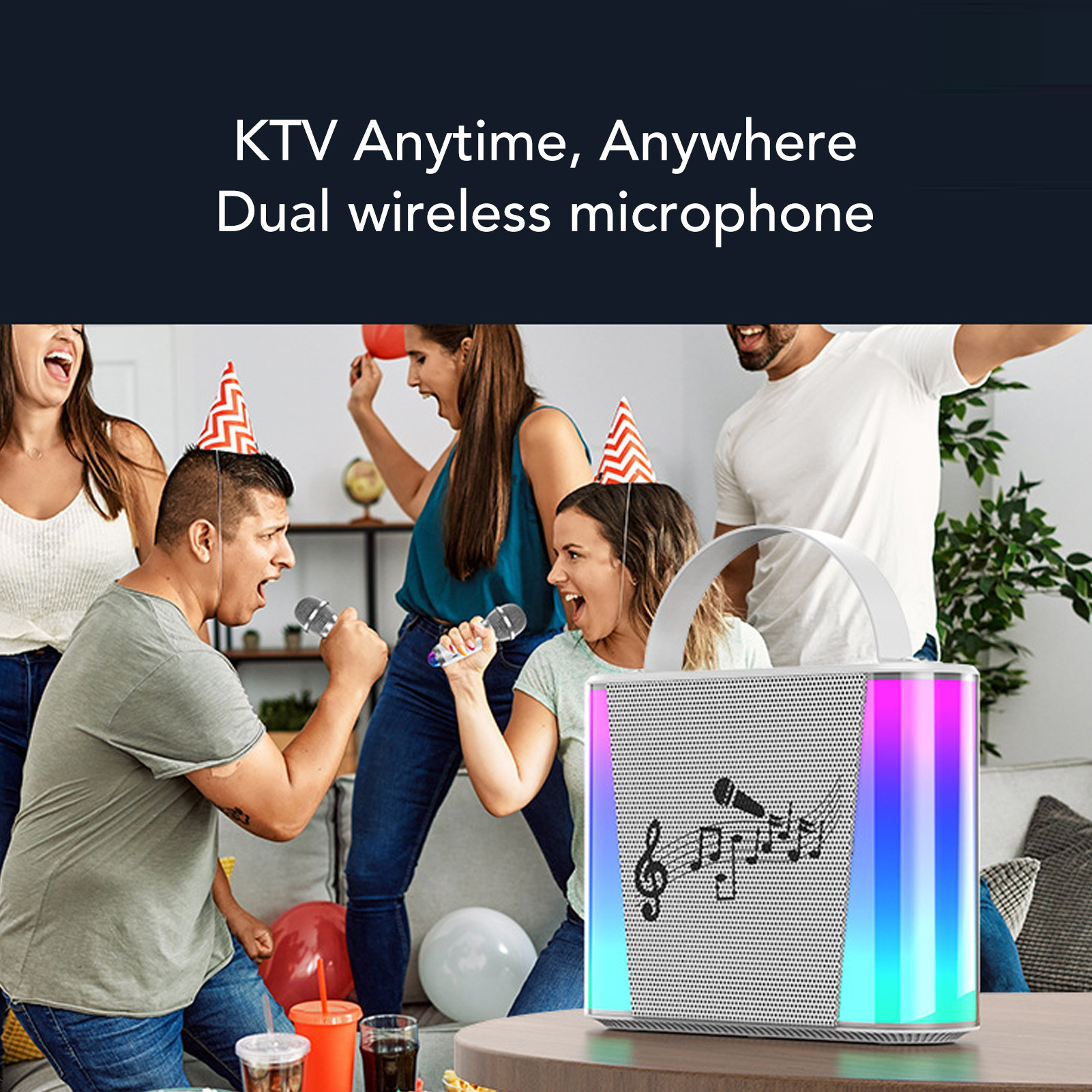 Kids Karaoke Machine Wireless Bluetooth Mini Karaoke Microphone Singing Speaker for Home White Double Mic