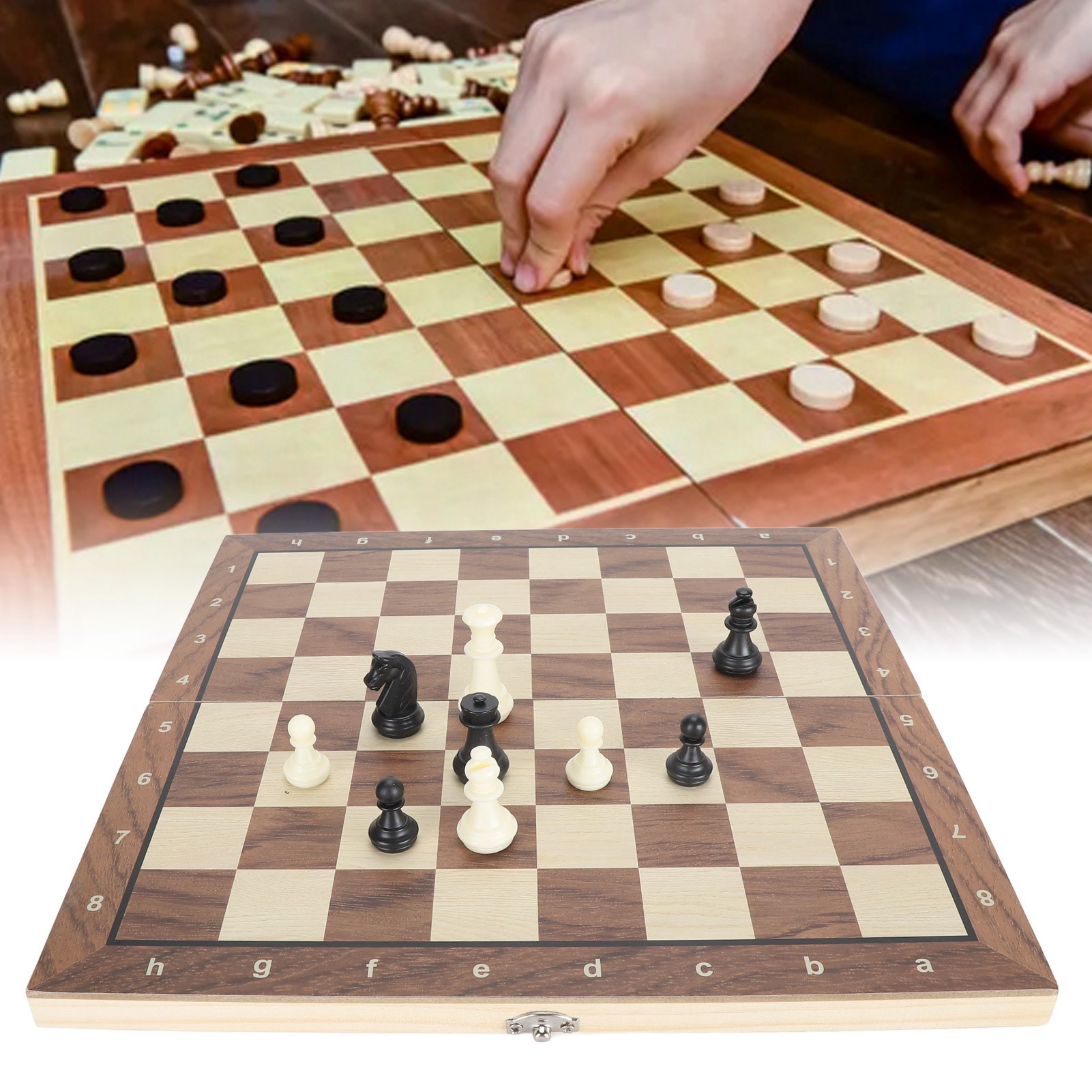 2 In 1 International Chess Set Folding Portable Reversible Chinese Chess Checkers Kit for Travel Outdoor