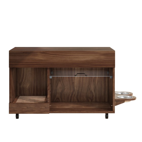 Multi-Function Litter Box Cabinet with Feeding Station, Cat Furniture with Hole Panel & Food Bowls, Hidden Toilet Sand Trap, 100x45.5x67cm - Color: Walnut/Grey Brown