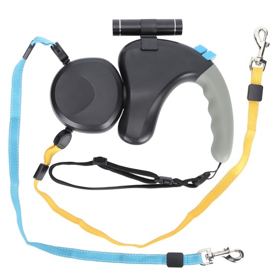 Black Dual Dog Leash for 2 Dogs, Tangle-Free Retractable Lead with LED Light (Battery Not Included), 3m Hands-Free Leash for Medium Large Dogs