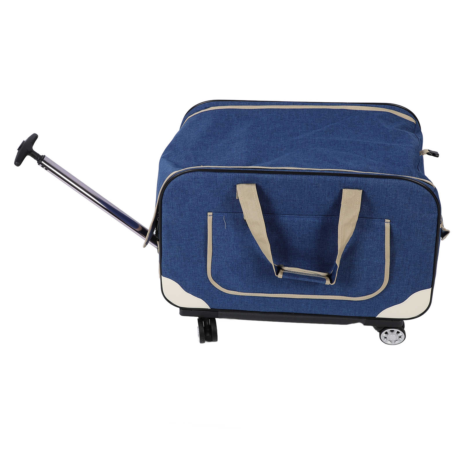 Rolling Pet Carrier Breathable Mesh Foldable Cat Dog Travel Bag with Detachable Wheels for Within 17.5kg Animals Blue