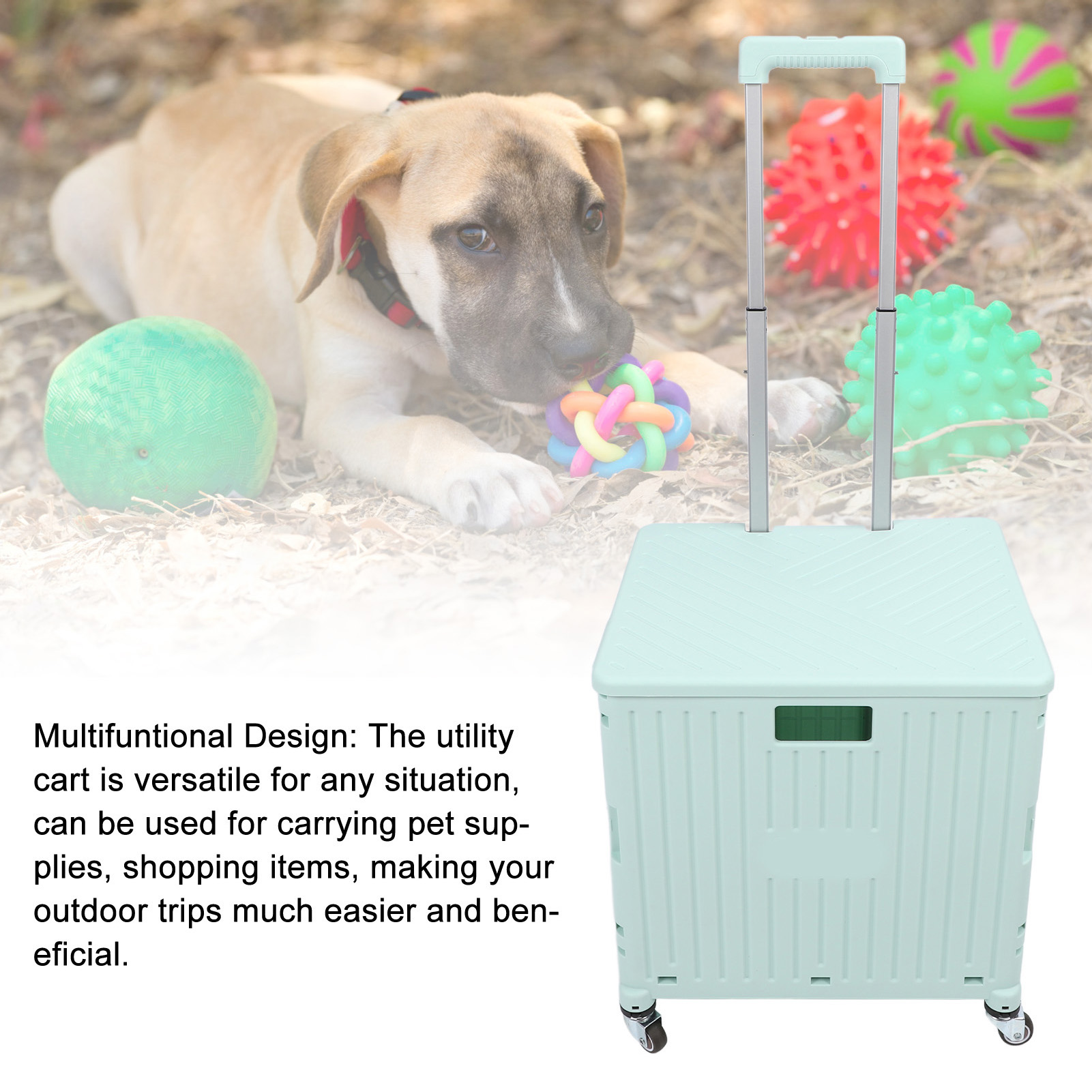Folding Utility Cart Telescoping Handle Versatile Convenient Storage Portable Rolling Crate Handcart with Wheels for Outdoor Green