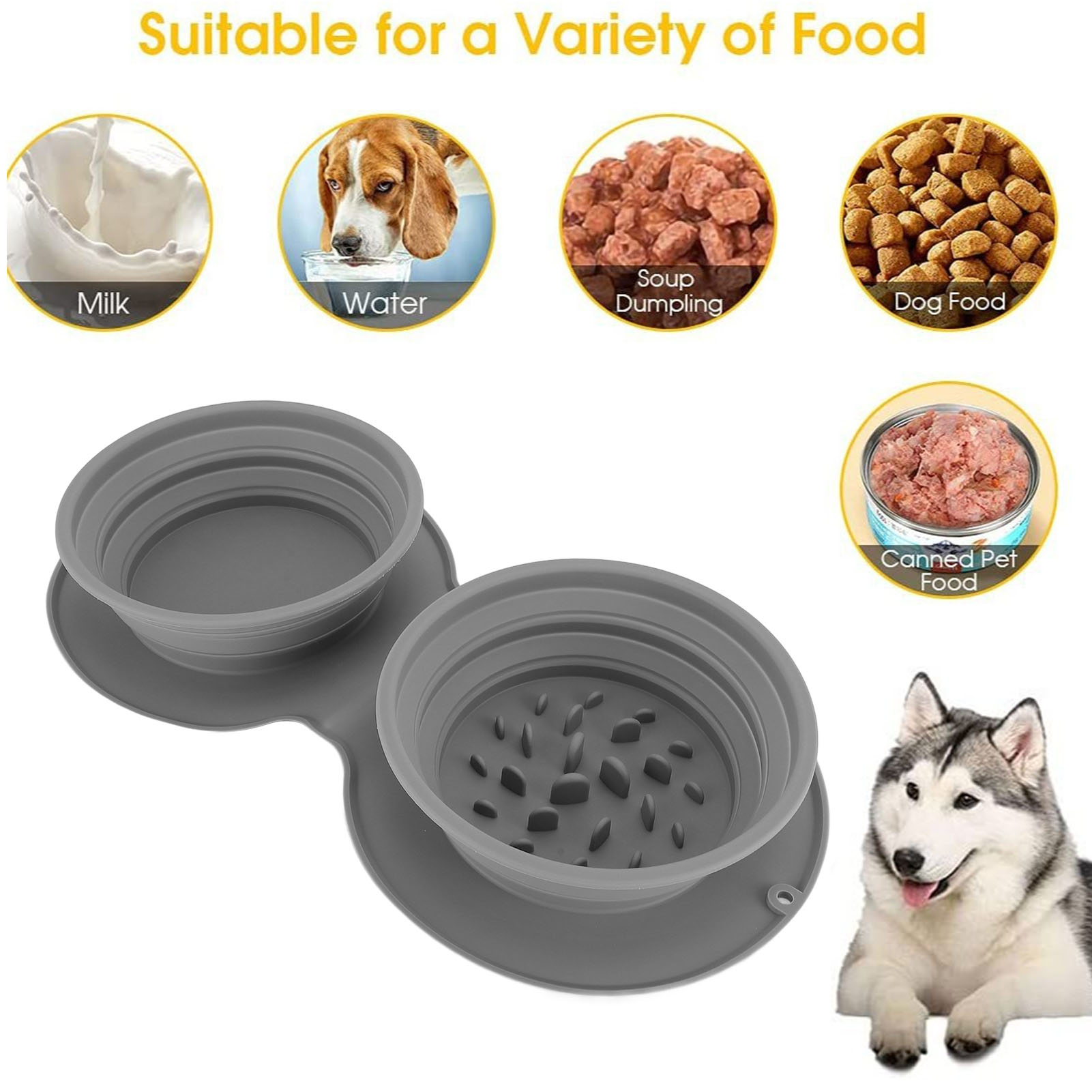 Travel Dog Bowl Easy to Clean Folding Silicone Pet Car Food Water Double Bowl with Mat for Traveling Walking Hiking