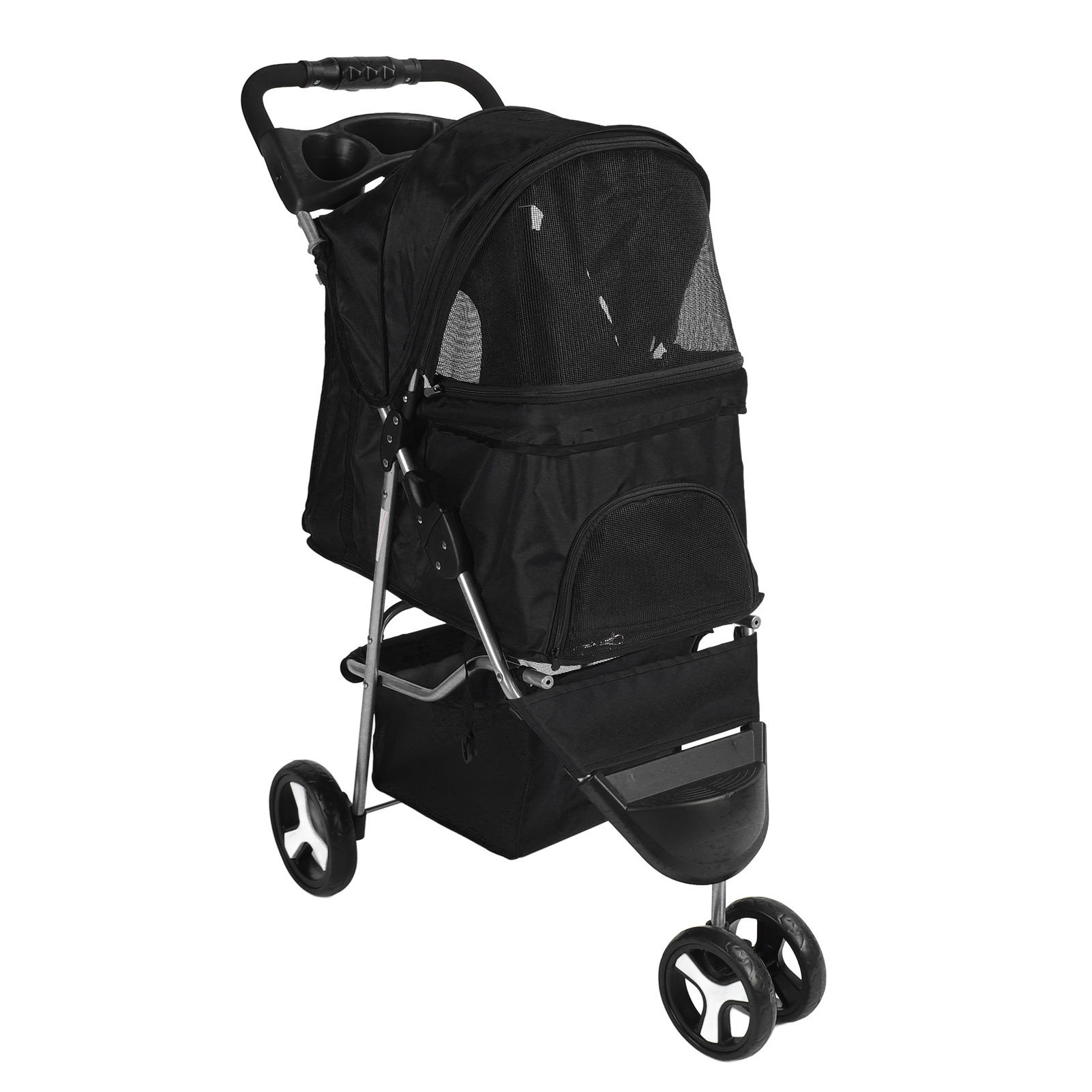 Pet Stroller Foldable Breathable Visible Mesh Dog Cat Carrier Cart with Storage Basket and Cup Holder for Outdoor Black