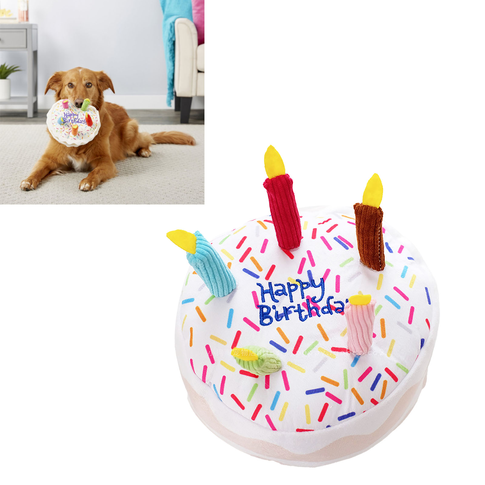 Birthday Cake Stuffed Toy Funny Soft Birthday Cake Chew Toy for Dogs Cats 7.87x8.27in