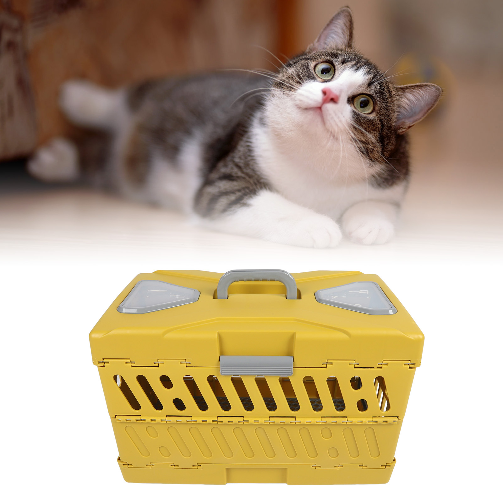Beiger Haustier-Rucksack mit Belüftungsfenster & Rundöffnung: Design-Akzente in Schwarz/Weiß/Rot, 31x26x38 cm, Leichter Stadtträger für Katzen/Kleinhunde