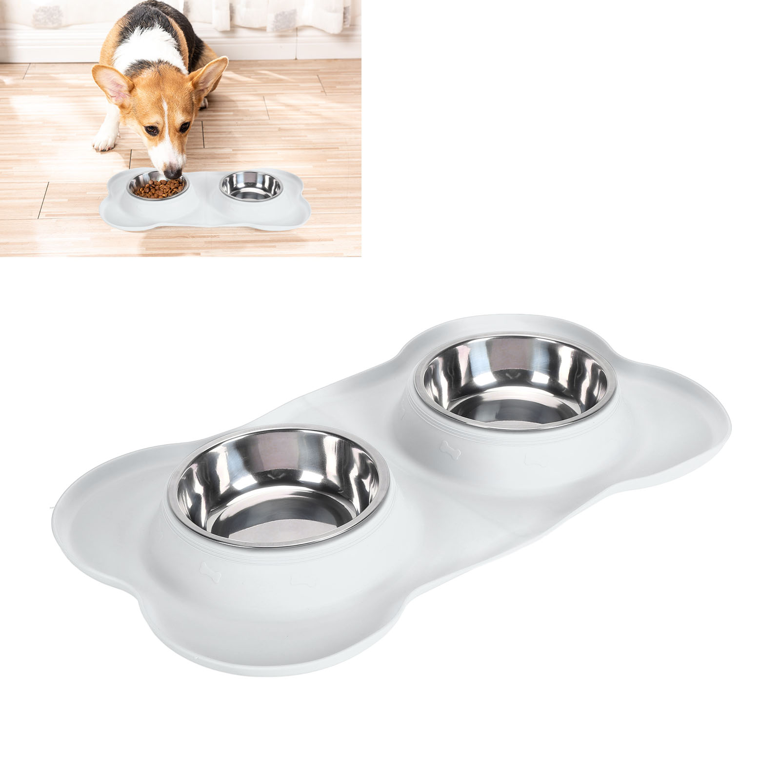 TPR Haustier Schüssel Edelstahl doppelte Schüssel Anti Überlauf und Anti Verschütten Nicht Silikon Hundeschale Große Haustier Futterschale Anti Rutsch Beige