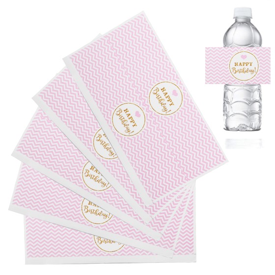 5 Sheets Student Birthday Party Water Bottle Labels, Self-Adhesive Pink & White Stickers for Wedding Bridal Shower Beverage Decorations (22x12.2cm)