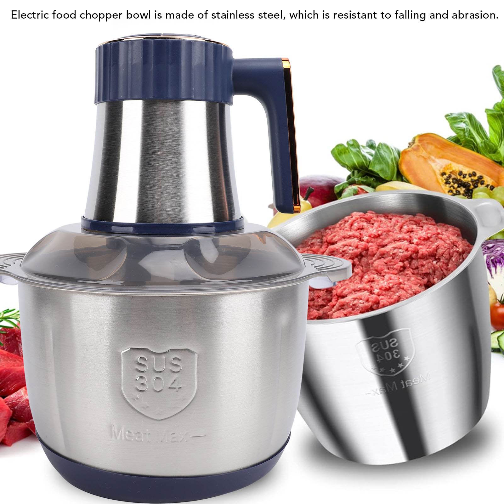 Food Chopper Electric Meat Grinder with 5L Stainless Steel Bowl 500W Copper Motor for Kitchen Meat Vegetables Onion Garlic Salad Fruits Nuts EU Plug 220V