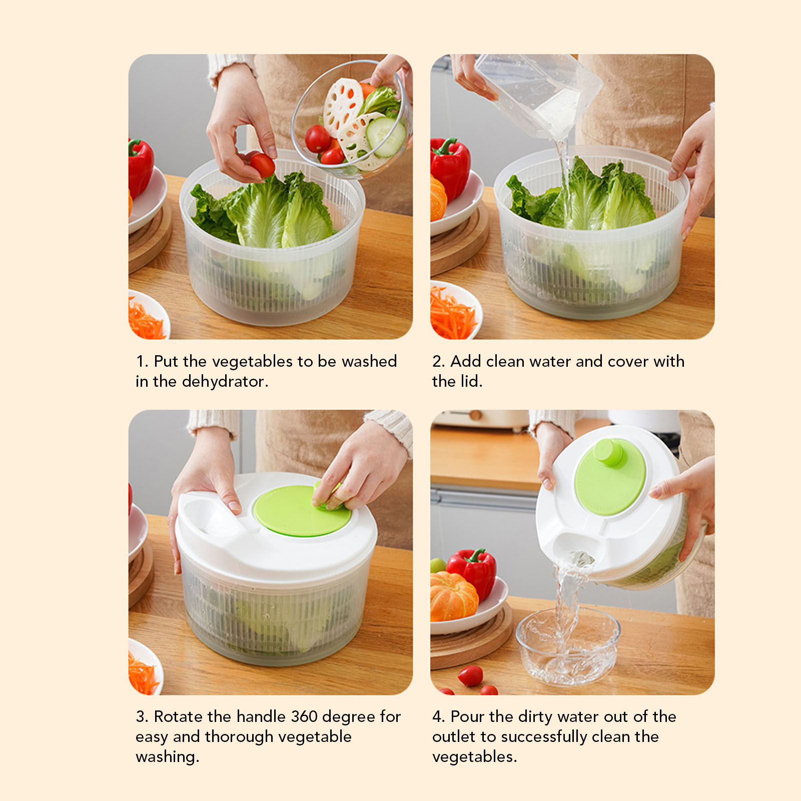 Stainless Steel Salad Spinner 5L Multifunctional Lettuce Spinner Vegetable Dryer with Lid Drain Bowl Colander for Home Kitchen