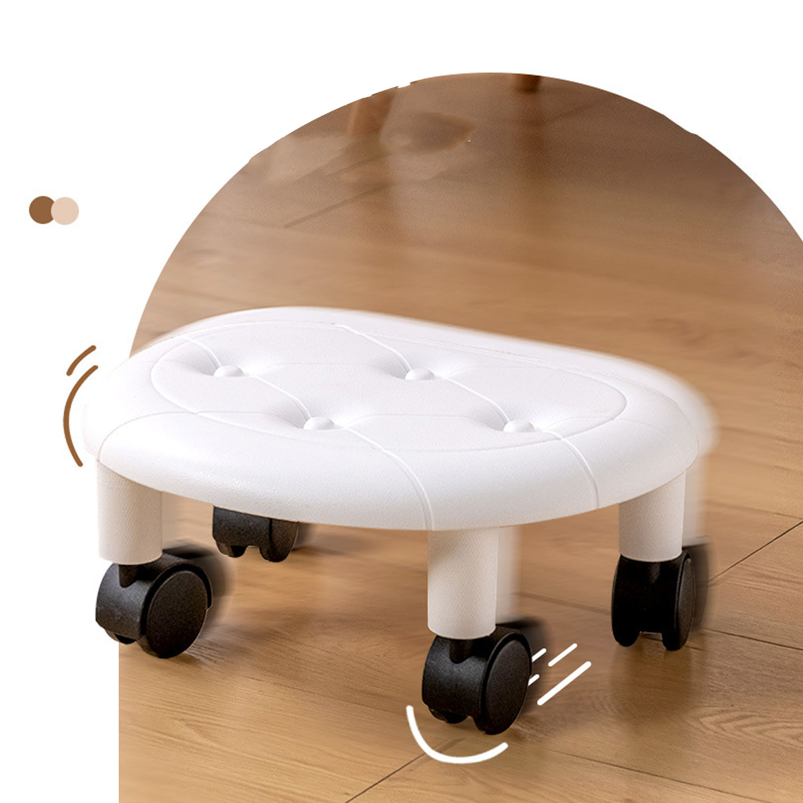 Low Roller Seating PU Surface Plastic Structure Movable Universal Wheels Stool for Living Room Baby Room White