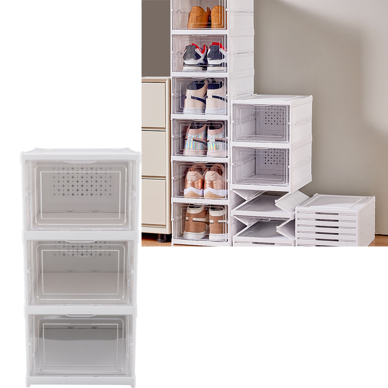 Shoe Storage Box Collapsible Clear Plastic Stackable Shoe Organizer for Closet Space Saving Foldable Shoe Rack Sneaker Container Bin Holder 3 Layers