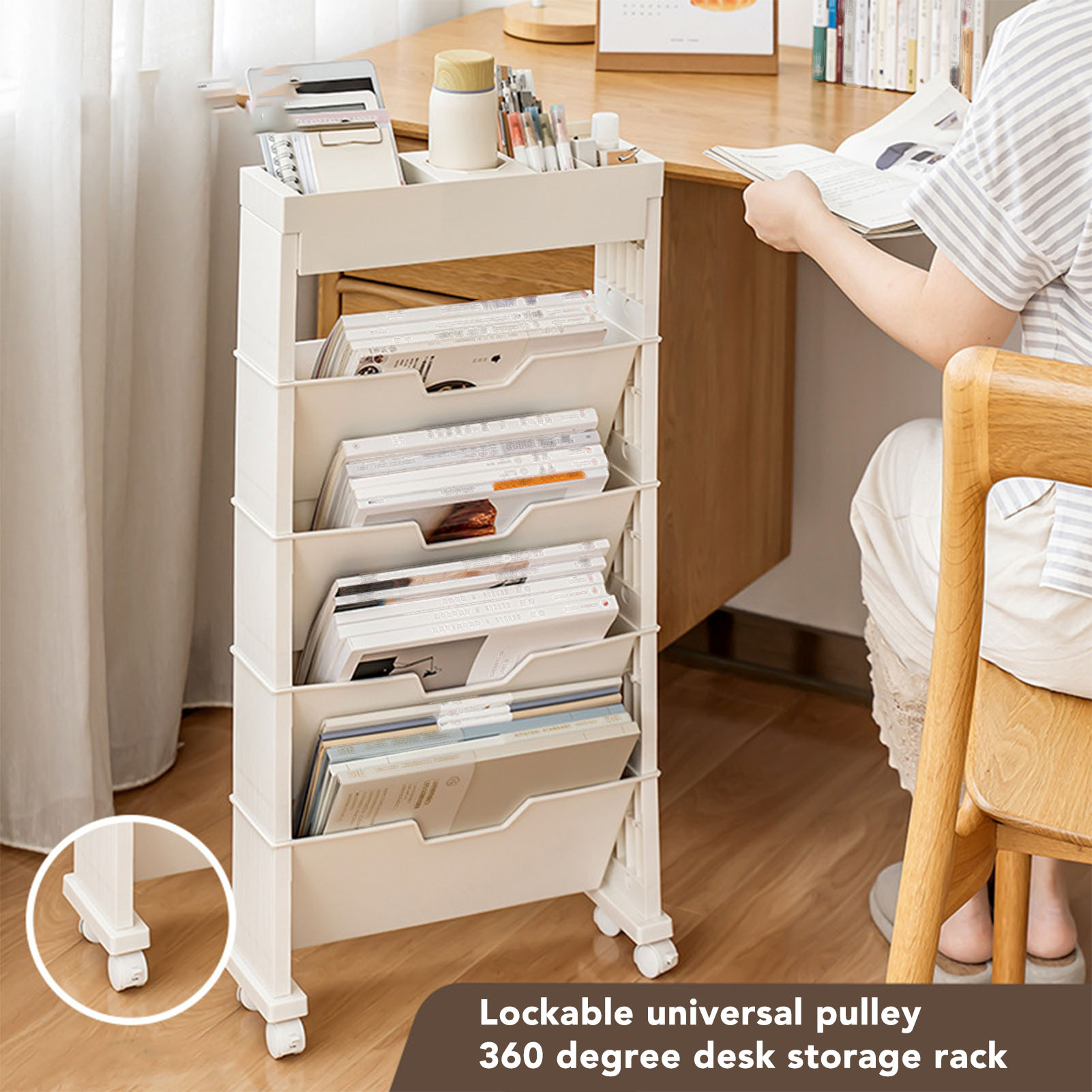 Mobile Bookcase Multipurpose Multi Layers Large Capacity Movable Book Storage Shelf for Indoor Classroom Bedroom
