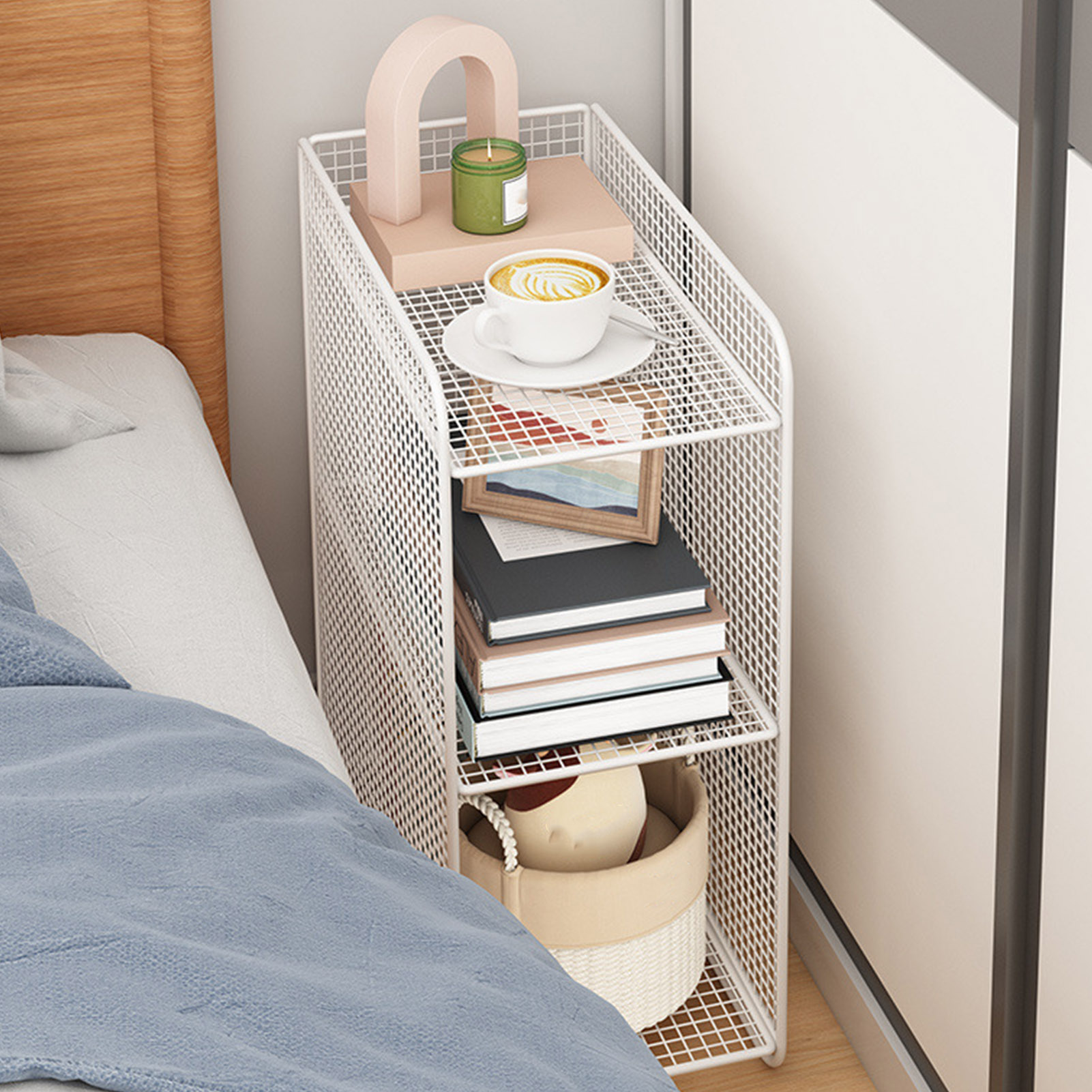 Schmaler Beistelltisch aus Metall im skandinavischen Stil, ideal für kleine Räume oder als Nachttisch