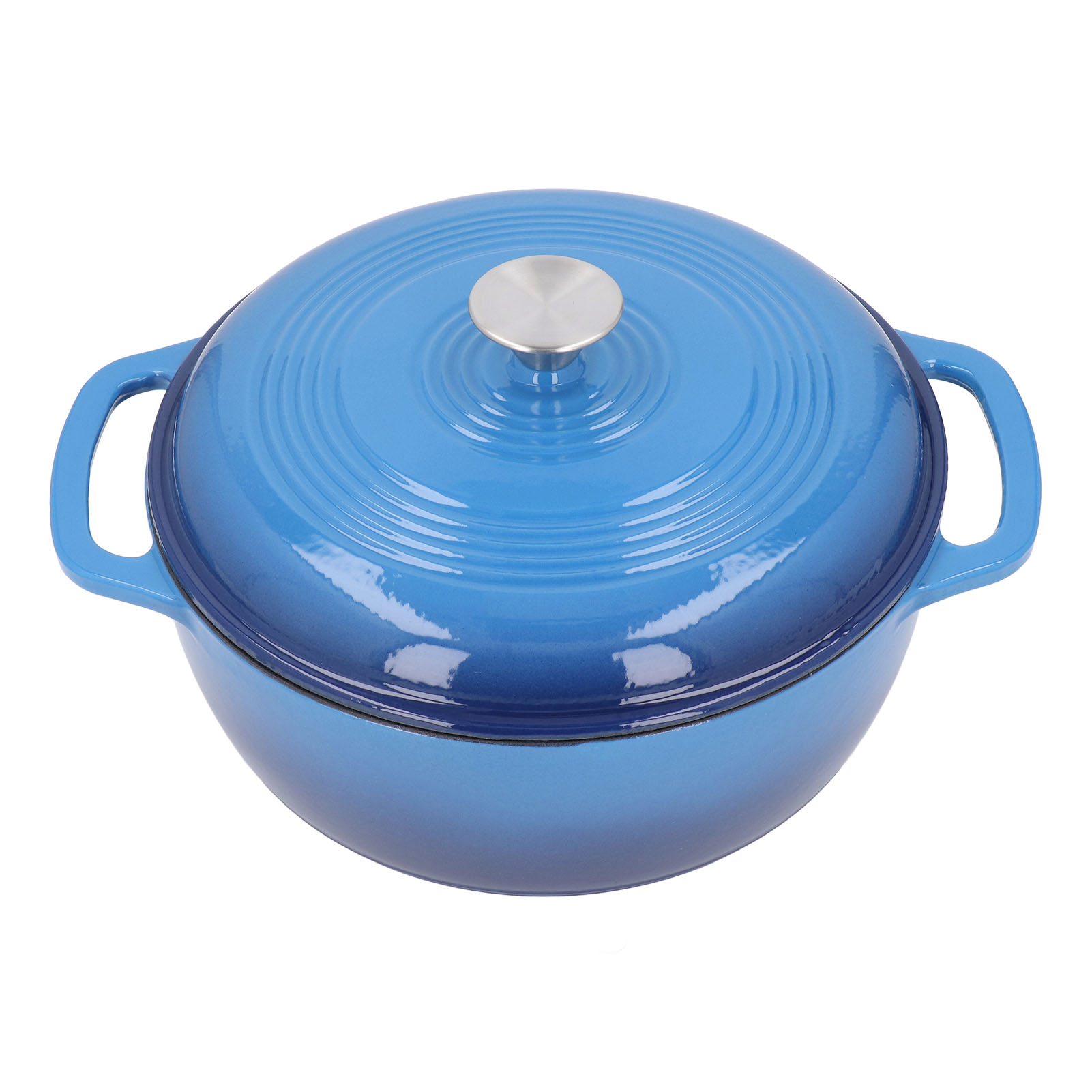 Emaille Gusseisentopf Vertiefter Schmortopf im Dutch-Oven-Stil mit Fadenmuster Flacher Brottopf Blau