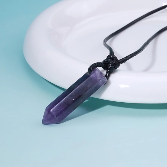 Natural Amethyst Column Necklace | 40x10mm Faceted Raw Stone | Black Cord Braided | German Energy Jewelry | Single Piece ONB2505079 runshi
