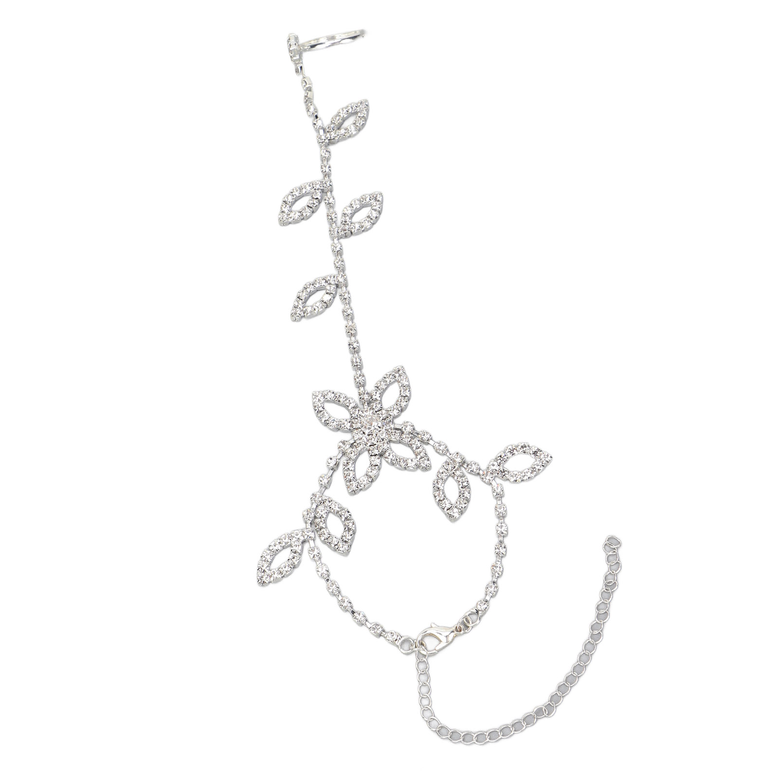 Rhinestone Foot Chain Women Stylish Leaves Shaped Pendant Anklet Jewelry Accessories for Beach Party