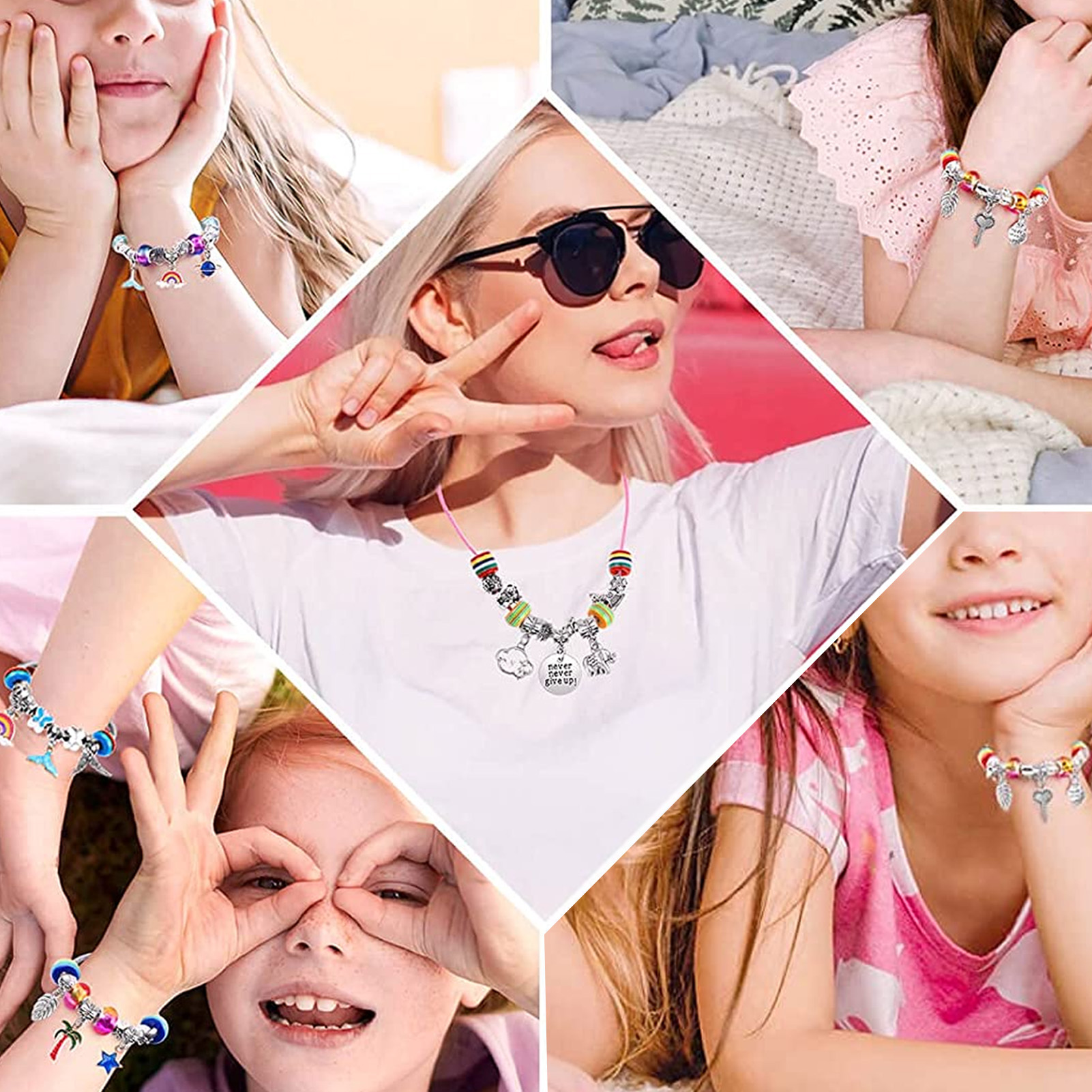 DIY Bracelet Making Kit Stylish 4 Leaf Clover Metal Charm Bracelet Making Kit with Beads for Teen Girls