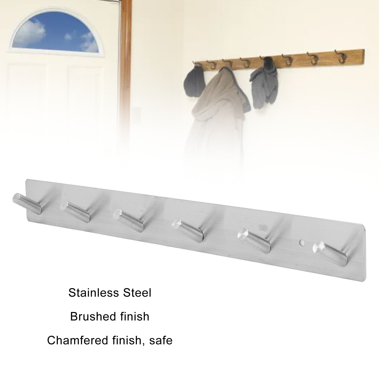 Coat Hook Rack Wall Mount Drilling Dual Use 6 Hook 304 Stainless Steel Strong Load Bearing Multifunctional Bathroom Towel Hook Rack for Bathroom Bedroom