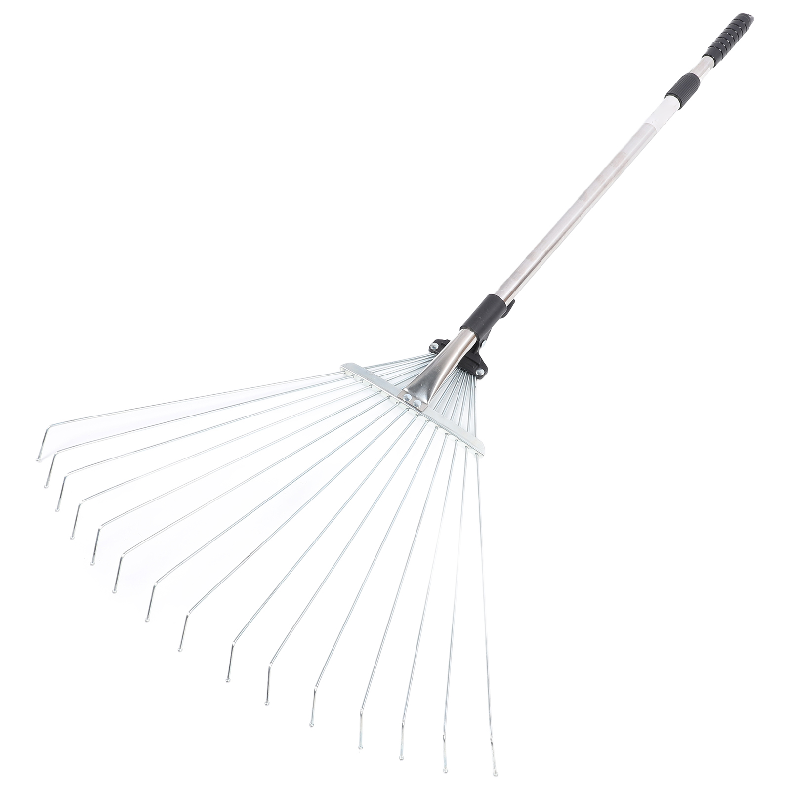 Adjustable Leaf Rake Retractable Expandable Stainless Steel Metal Lawn Yard Garden Hand Tool 15 Teeth