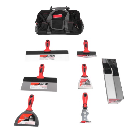 12 Inch Drywall Tool Kit - 6-Piece Stainless Steel Scraper Set with Mud Pan & Storage Bag for Wall Repair and Paint Removal