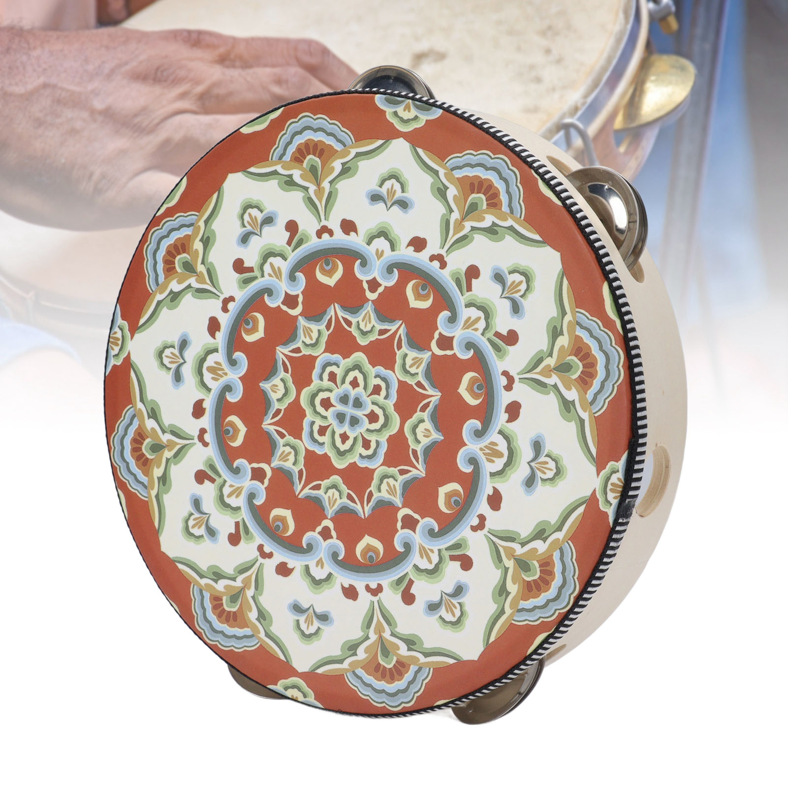 Kinder Erwachsene Ringdrum 8-Zoll Percussion Instrument Handheld Drum Kinder Erwachsene Metall Bell Percussion Geschenk Geeignet für Kirche KTV Parteien