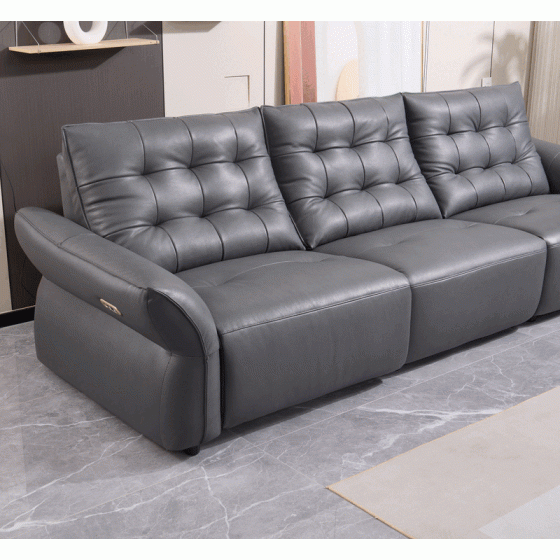 Large three-seater electric sofa with right-side electric recliner, elegant black, enhancing home comfort naite