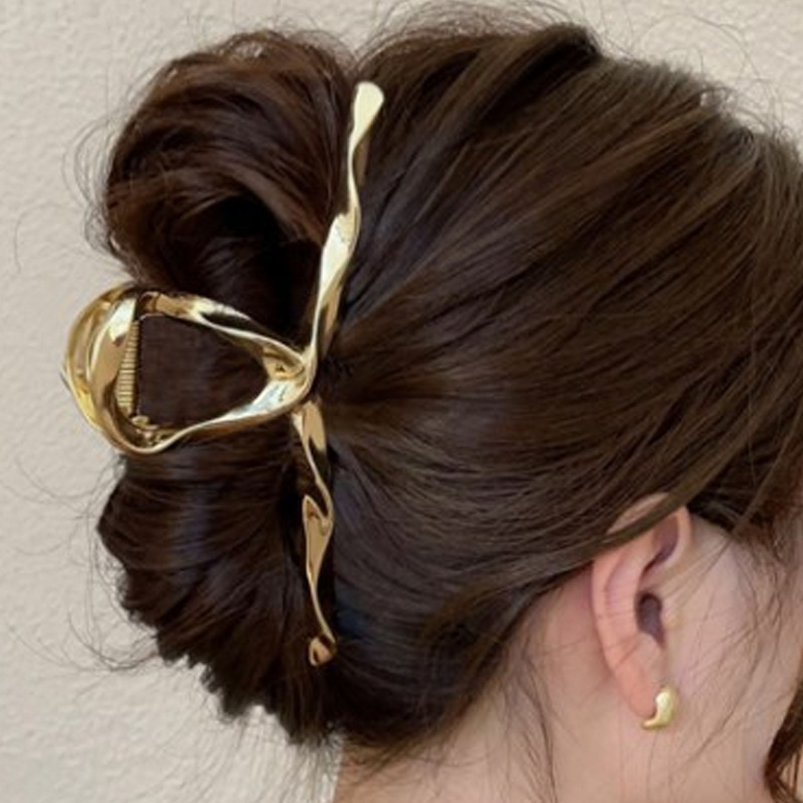 Whaline Hair Claw Clip Whaline Twisted Claw Clips Clamps Wave Large Alloy Hair Catch Pure Color Styling Accessories Gold