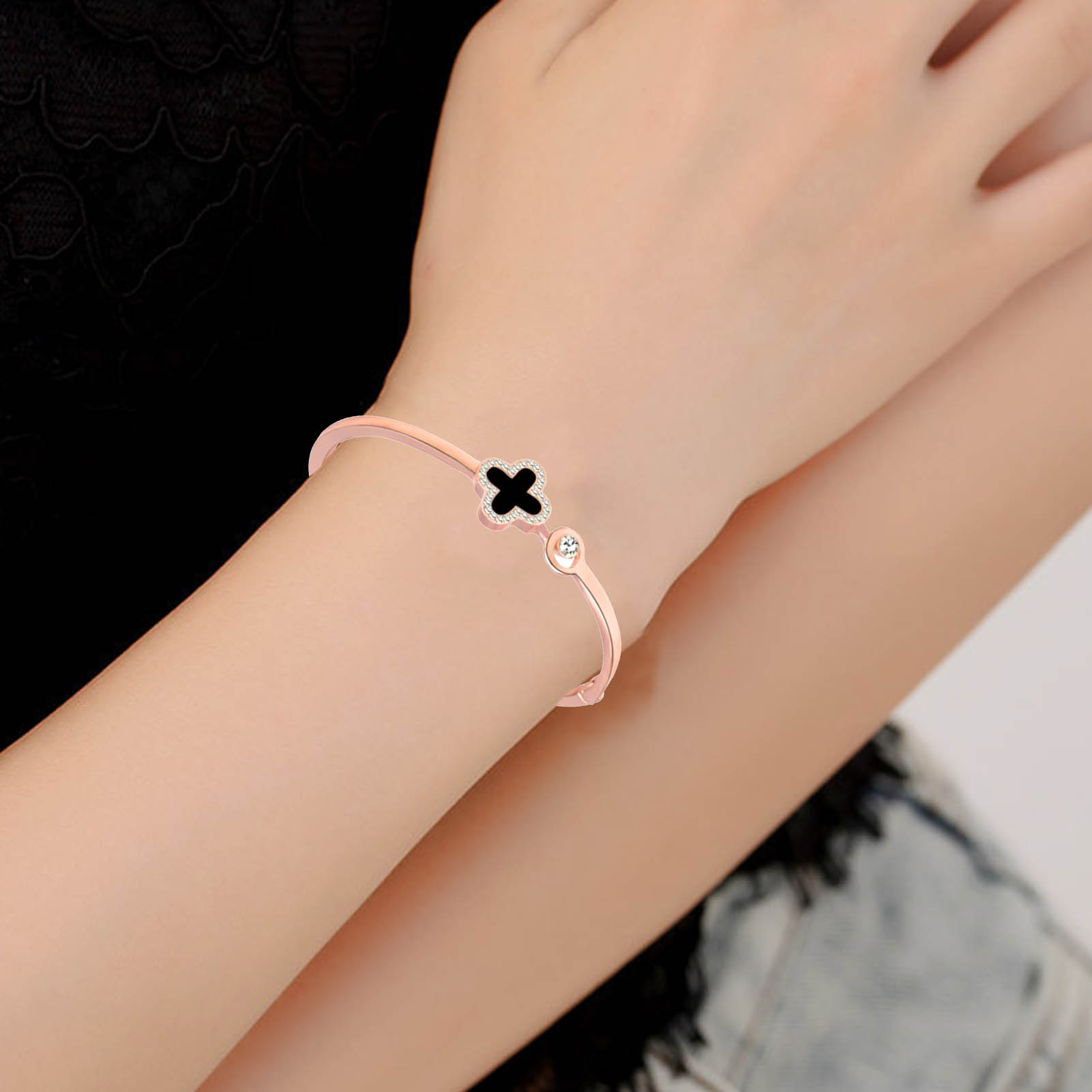4 Leaves Clover Bracelet Rose Gold Plated Alloy Lucky 4 Leaf Bracelet Alloy Accessory Jewelry Rose Gold Black