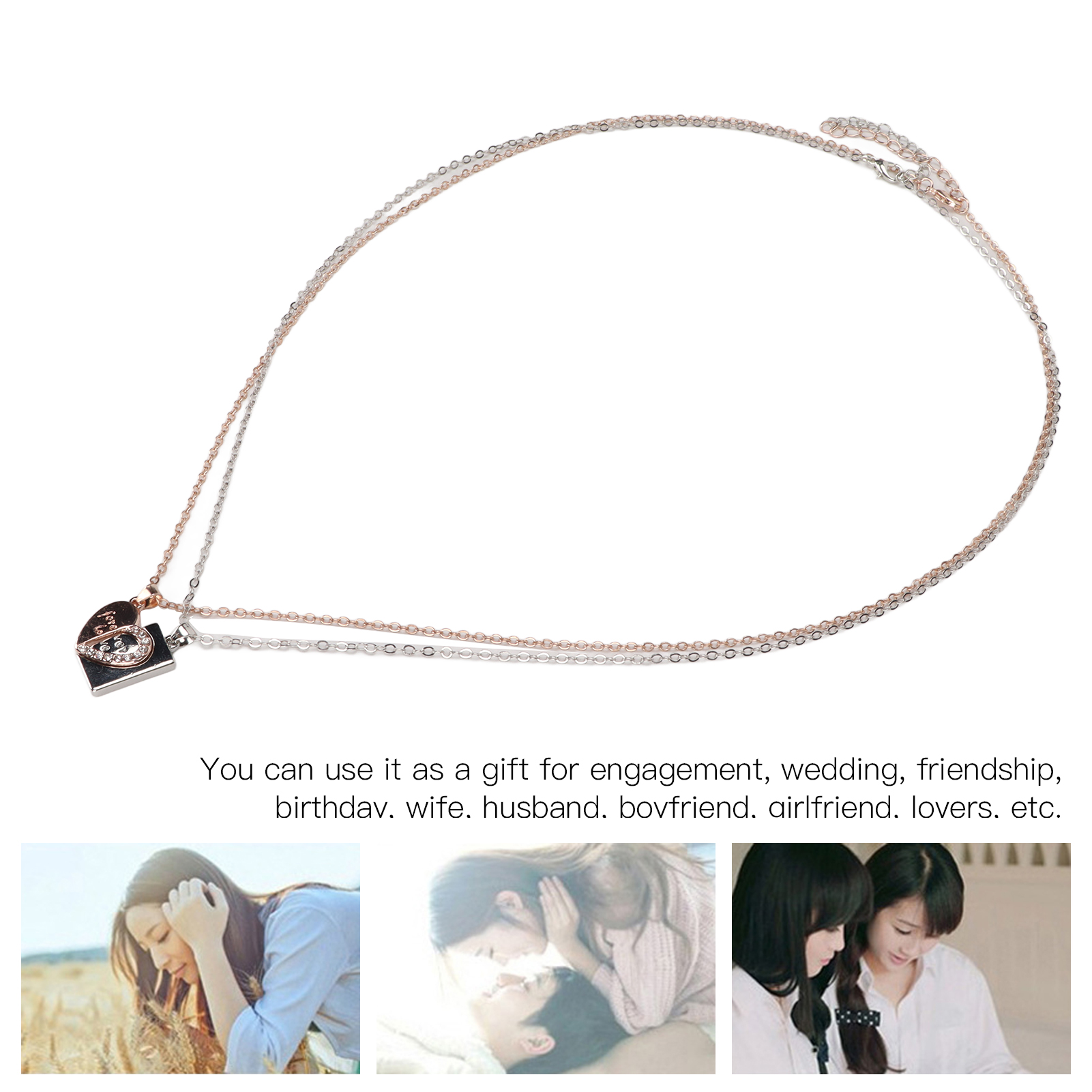 2pcs Heart Magnetic Necklace Alloy Heart Couple Matching Necklace for Him and Her(Rose Silver )