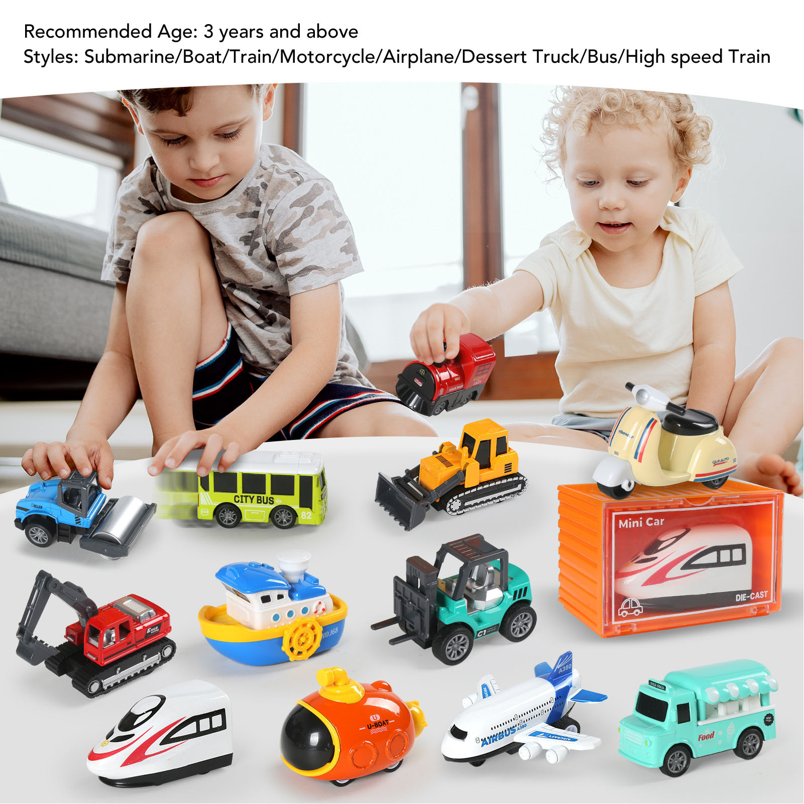 12-teiliges Spielzeugset für Kinder mit Rückziehautos, Booten, Flugzeugen und niedlichen Metallmodellen