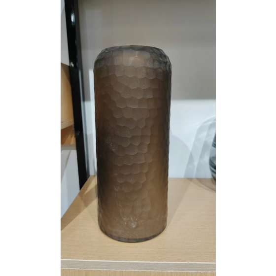 Tiefbraune Glasvase mit 3D-Wabenstruktur Ø10,0cm H36cm - Kunstvolle Deko für Sonnenblumen & Trockensträuße | Robuster Alltagsgebrauch (Fensterbank/Diele) | Einzelvase mit strukturierter Oberfläche für Inneneinrichtung & Atelier