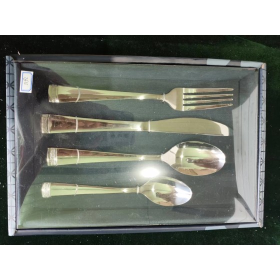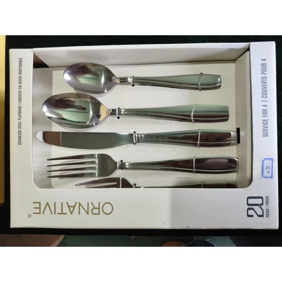 20-tlg. Edelstahl Besteckset in weiß/gelb: 4 Teelöffel + 4 Esslöffel + 4 Dessertgabeln + 4 Salatgabeln + 4 Dessertmesser mit Geschenkbox - Für Kaffeekränzchen, Grillgemüse & Käseplatte (rostfrei, spülmaschinengeeignet)