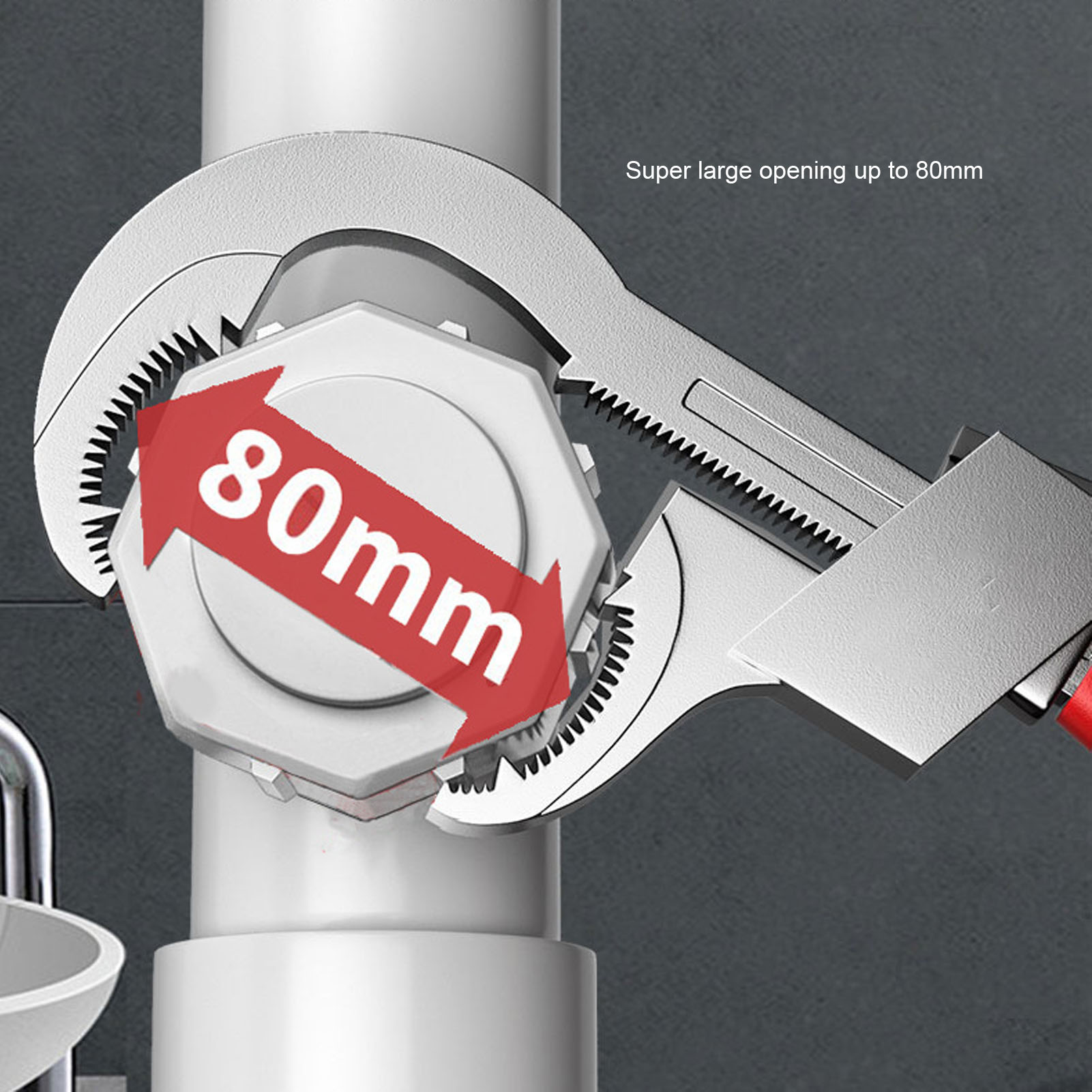 Multifunktions-Spülenschlüssel für Sanitärbereich – Verstellbarer Wasserhahn-Reparatur-Schlüssel mit 80 mm großer Öffnung und 3 Aufsätzen