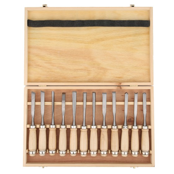 12-teiliges Stechbeitel-Set im Holzkoffer | aus Chrom-Vanadium-Stahl | für Holzschnitzerei, Modellbau & Möbelrestauration | Profi-Werkzeug