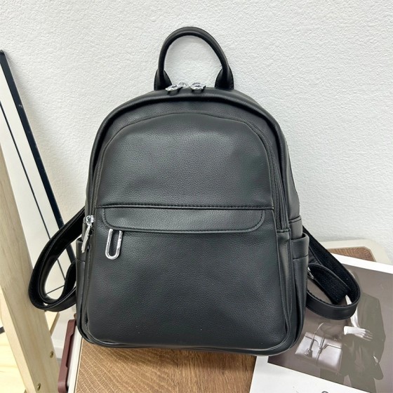 Schulrucksack aus Lederoptik in 3 Farben (Sandbeige/Khaki/Schwarz) – Mit Tragegriff & Organizer-Fächern: Hauptfach-Reißverschluss, Fronttasche mit Metallzierreißverschluss, Seitentaschen | Ideal für Berufsalltag 33x26x13cm baisitu
