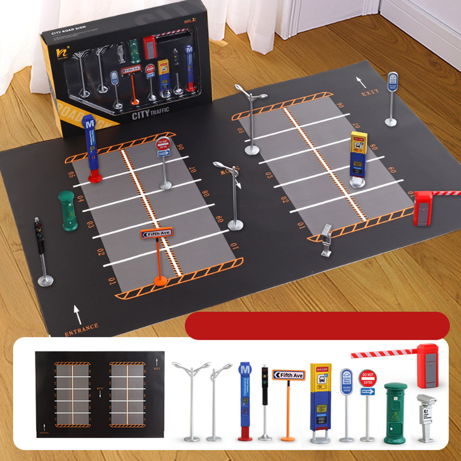 Miniatur-Simulationsmodell für Straßenverkehrsinfrastruktur mit Parkszene, Spielzeug-Set für Kinder, Miniatur-Stadtverkehrsanlagen-Modell