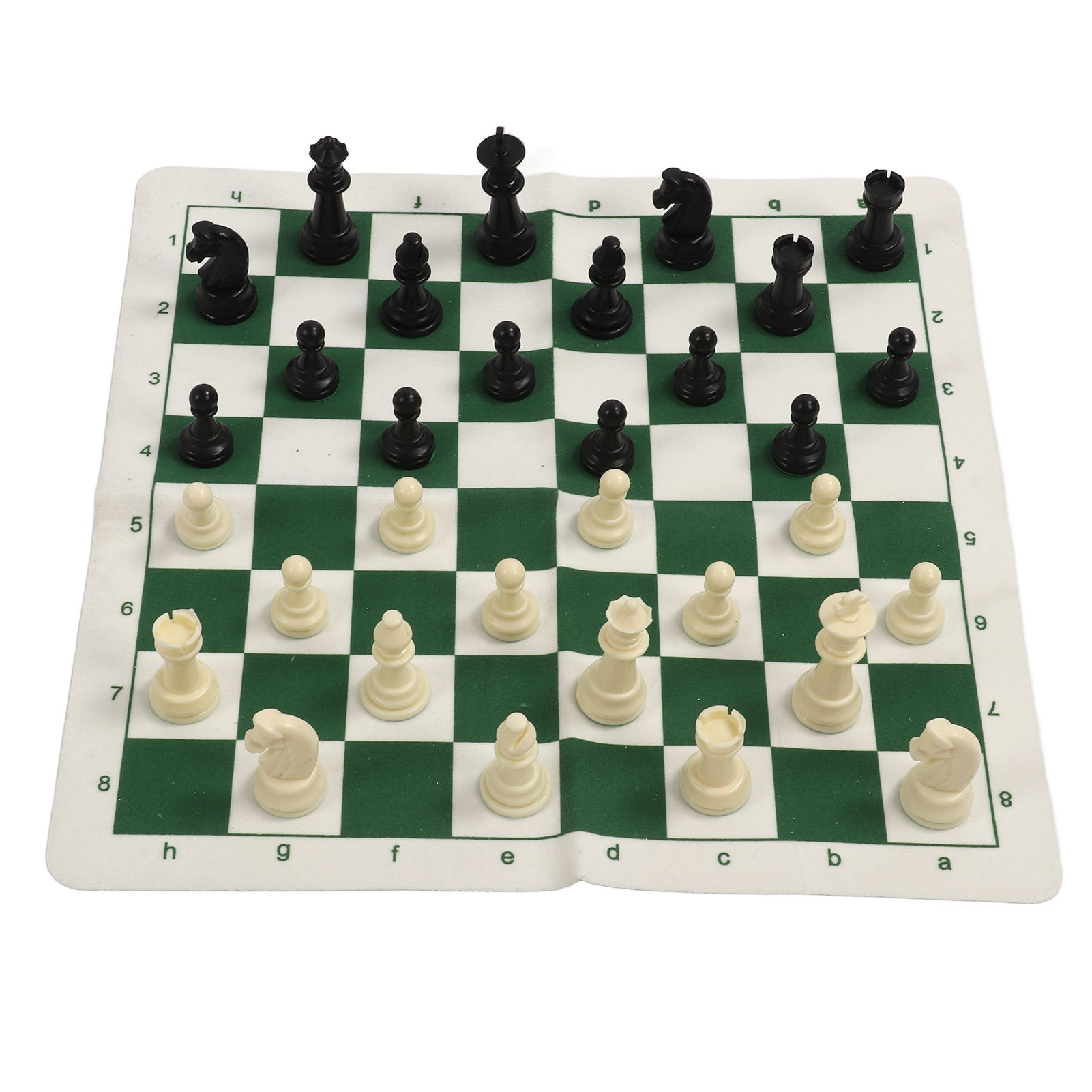 Schach internationales Schachbrett PU Kunstleder Schachbrett (Königshöhe 75mm Kordelzug Samt Tasche) grünes Schachbrett