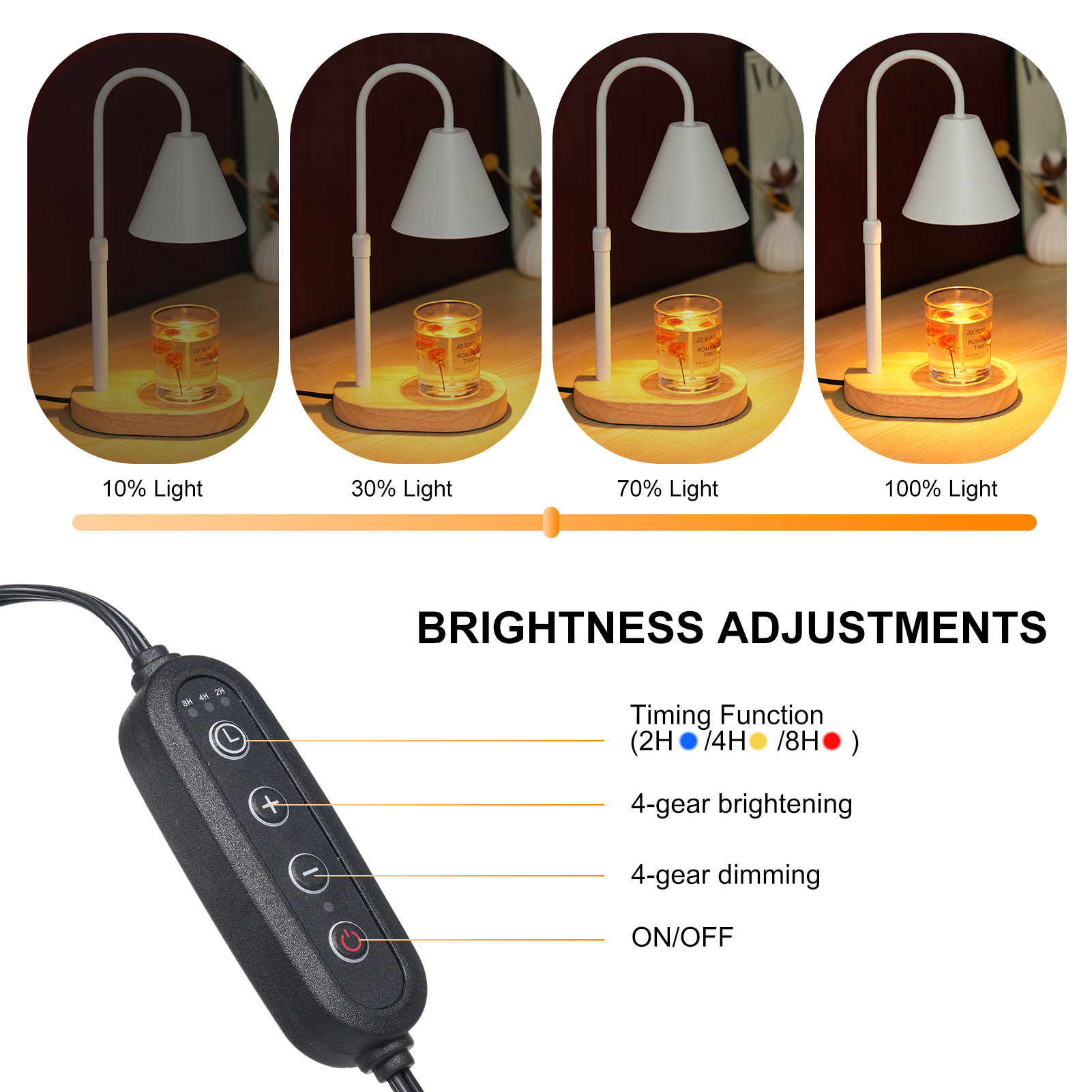 Aromatherapie Wachs Schmelzlampe mit Metall Lampenschirm und Holzsockel, kein Feuer und rauchloser Aromaofen, Kerze ätherisches Öl Schmelzlampe, Drahtgesteuerte Helligkeit mit 4-Stufen einstellbar, 2/4/8 Stunden, zeitlich einstellbar, US Standard 110V
