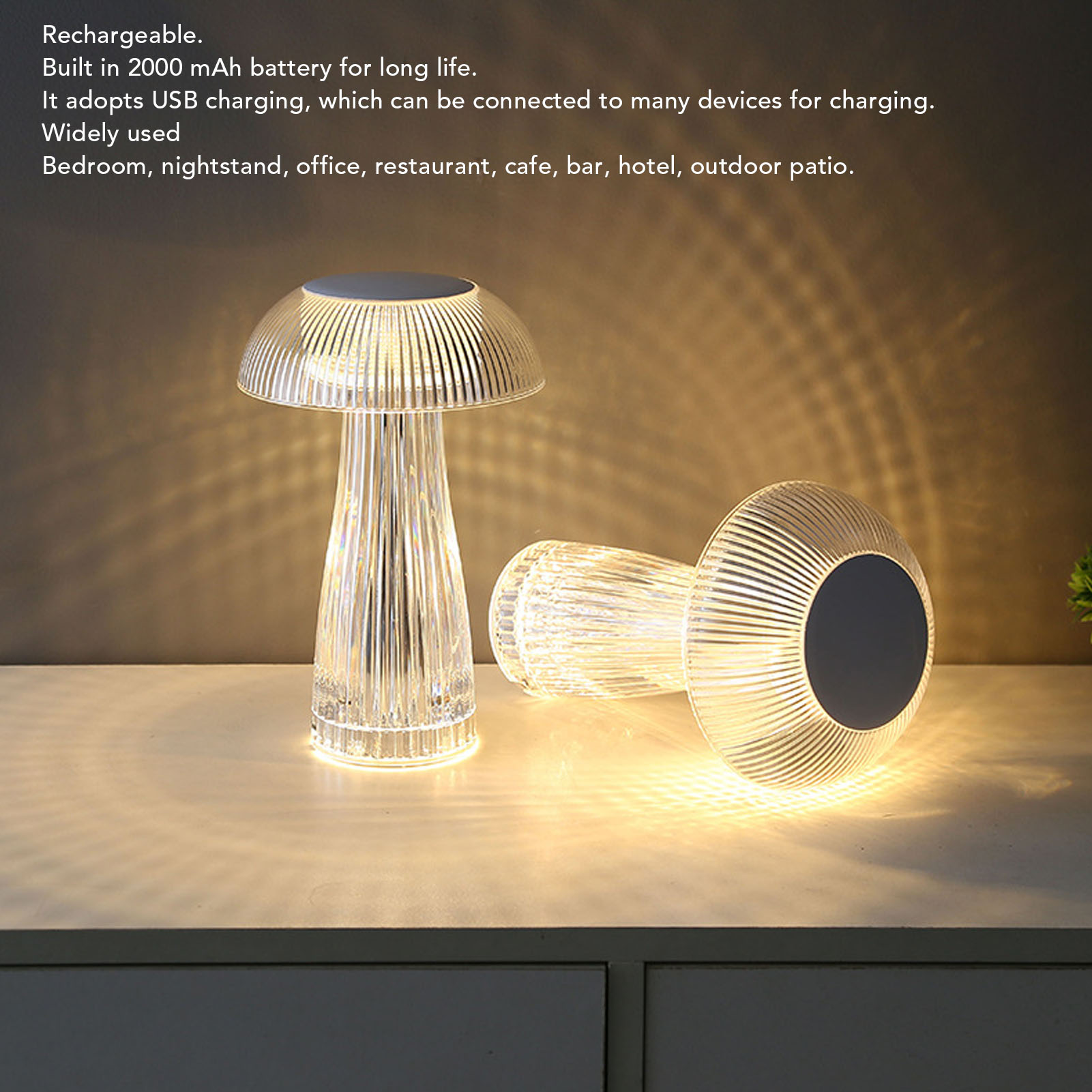 Pilzlampe aus Acryl,transparente moderne Schreibtischlampe,wiederaufladbare Akku Schreibtischlampe tragbare Kuppel Schatten Schreibtischlampe, für die Dekoration des Schlafzimmer,des Wohnzimmers und zum Lesen