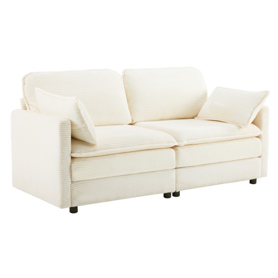 Modernes 2-Sitzer Sofa mit Kord-Stoff | Bequemes Minimalsitisches Sofa für Wohnzimmer & Schlafzimmer | Kleines LoveSofa für Wohnung | Weiß