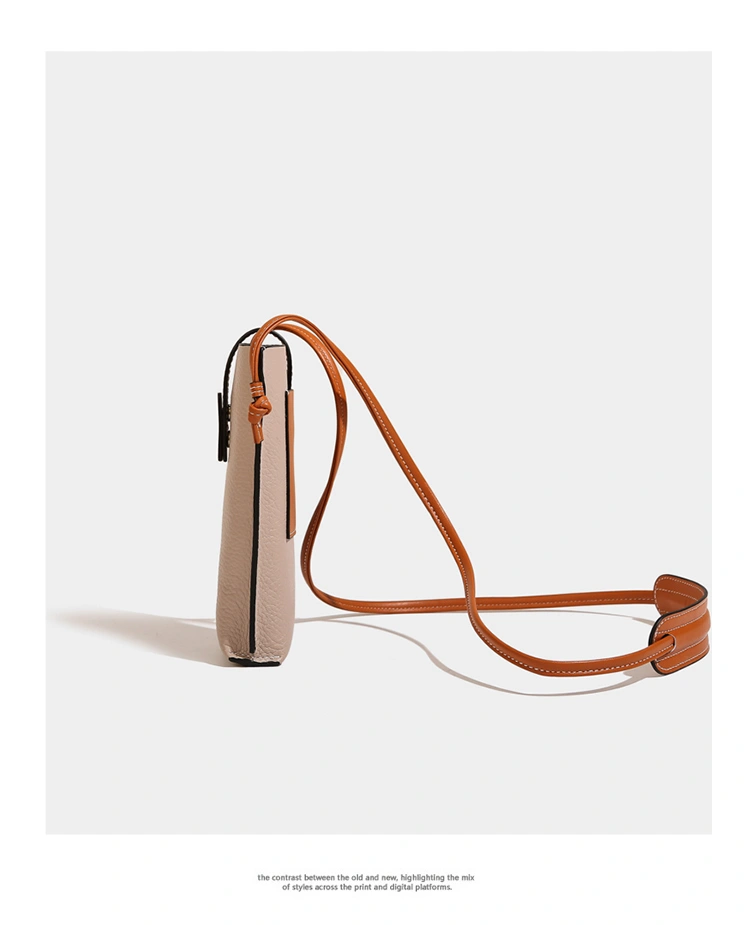 Handytasche aus hochwertigem Rindsleder, minimalistische vertikale Umhängetasche, modische tragbare Damentasche mit Farbblock-Design, 11 x 17 x 3,5 cm (Mingheng)